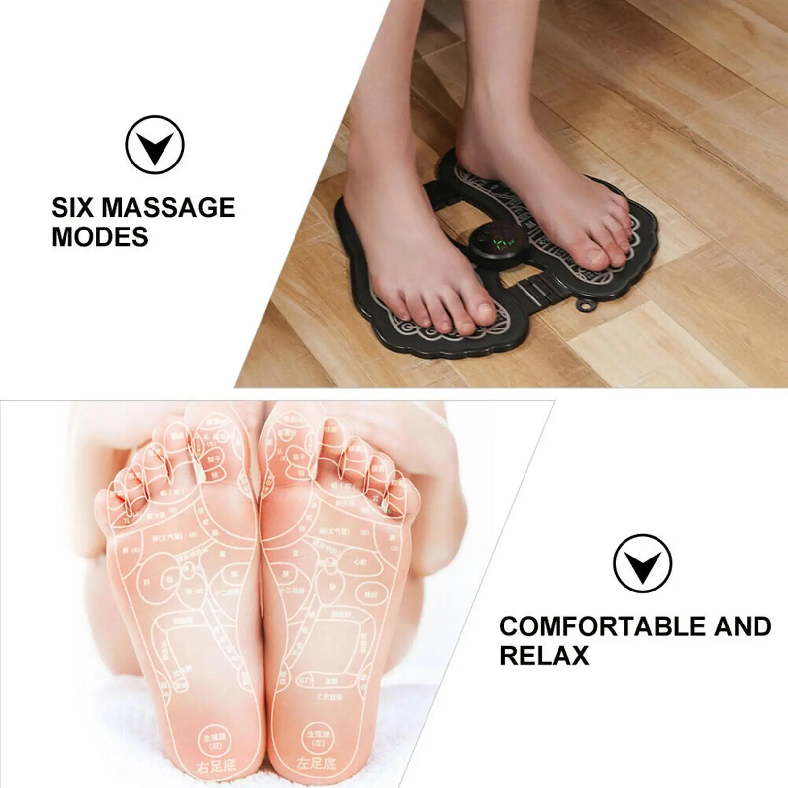 Jiburudishie kwa raha kuu na kifaa chetu cha EMS Massage Electric Foot Massager Pad. Kilichoundwa kwa faraja na urahisi wa hali ya juu, kifaa hiki cha ubunifu kinakuletea uzoefu wa spa moja kwa moja nyumbani kwako. Jisikie manufaa laini ya tiba ya umeme ikichanganywa na ujumuishaji wa massage ya mguu ili kufurahia tiba ya kufufuka baada ya siku ndefu.